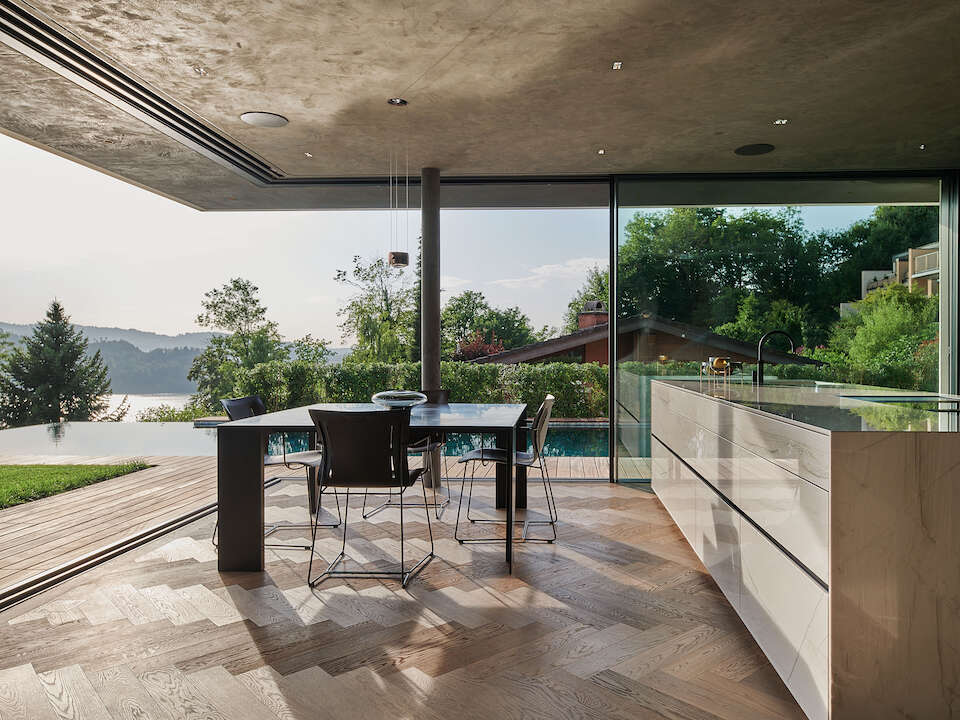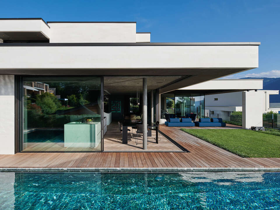 Mit den rahmenlosen Schiebefenstern von swissFineLine lassen sich weitläufige Glasfassaden variabel öffnen und schliessen. Ein architektonisches Highlight sind dabei die Ecköffnungen, welche Raumgrenzen förmlich verschwinden lassen. Balkon, Terrasse und Garten werden zur natürlichen Erweiterung des Wohnraumes. Dank der schwellenlosen Bodenschienen sind die Übergänge zwischen innen und aussen im geöffneten Zustand kaum wahrnehmbar.