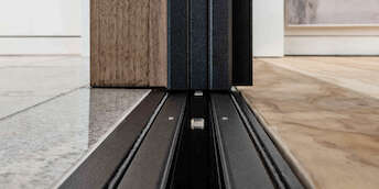 Cela signifie que le seuil est complètement affleurant lorsque les portes sont ouvertes et permet une transition douce entre l'intérieur et l'extérieur. Grâce à ce mécanisme élégant, swissFineLine réalise le lien parfait entre l'esthétique et l'accessibilité.